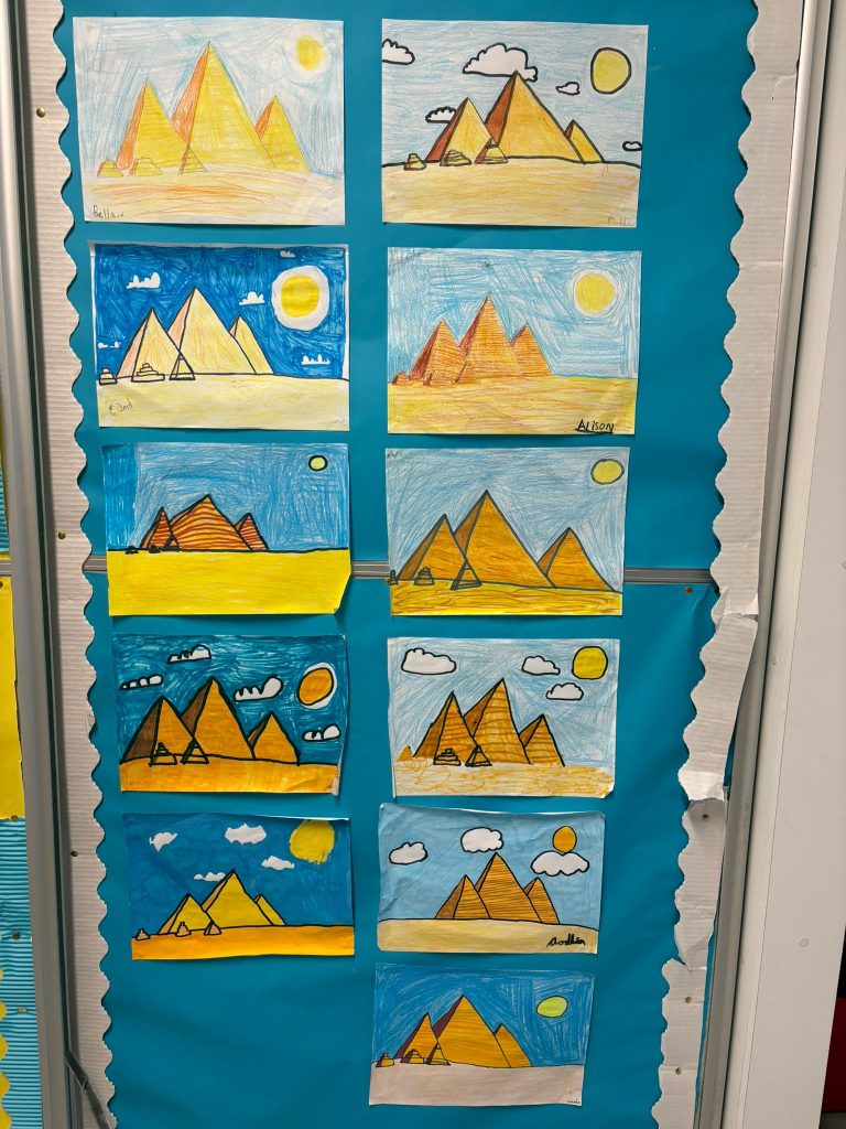 Rang a 5 A and B were learning about the Egyptians in September. They really enjoyed it and made some lovely art work.