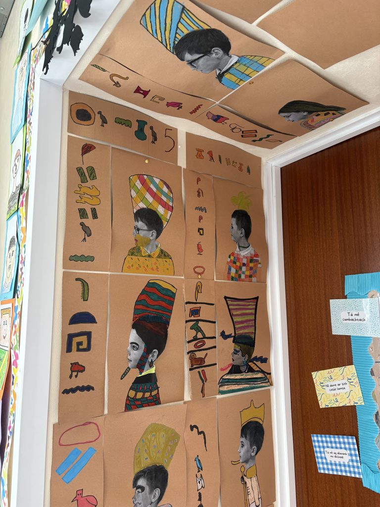 Bhí Rang 5 A agus B ag foghlaim faoi na hÉigiptigh i Mí Meán Fómhair. Bhain siad an-taitneamh as agus rinne siad ealaín álainn.